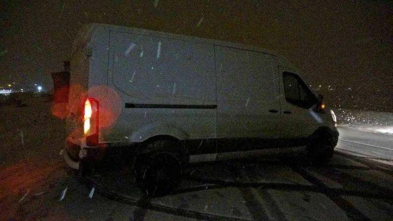 Yoğun kar yağışından dolayı minibüs rampada mahsur kaldı