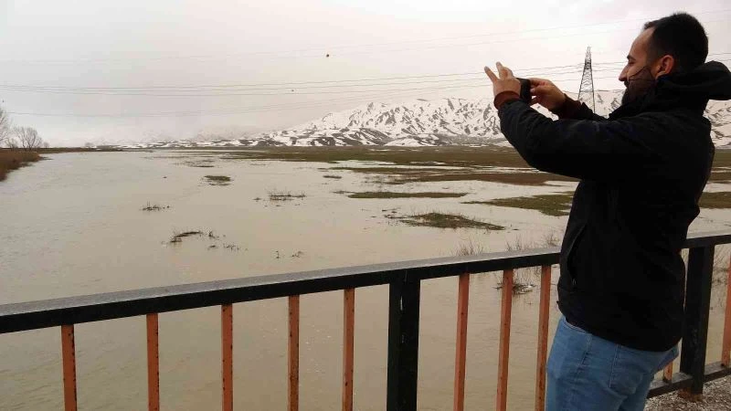 Üç gün önce ilçede başlayan Suriye kaynaklı toz bulutu ve ardından devam eden yoğun yağışlarla beraber ilçeyi olumsuz yönde etkiledi. Yoğun yağışlar ve karların erimesiyle Karabey, Yürekli ve Köprücük köyüne kadar bulunan arazi tamamen sular altında kaldı. Hasım Han, “Bilindiği gibi 3 gün önce Suriye ve Arabistan üzerinde gelen çöl tozunun ardından başlayan yoğun yağışlarla beraber eriyen kar sularıyla ilçenin Karabey, Yürekli ve Köprücük köyüne kadar uzanan ova tamamen sular altında kaldı. Ben de yolda geçerken o manzarayı cep telefonumla çektim şuana kadar gördüğümüz kadarıyla herhangi bir ev ya da bir yere zarar vermemiş. Ama ilçenin ovası sular altında kalmış durumdadır’’ dedi.