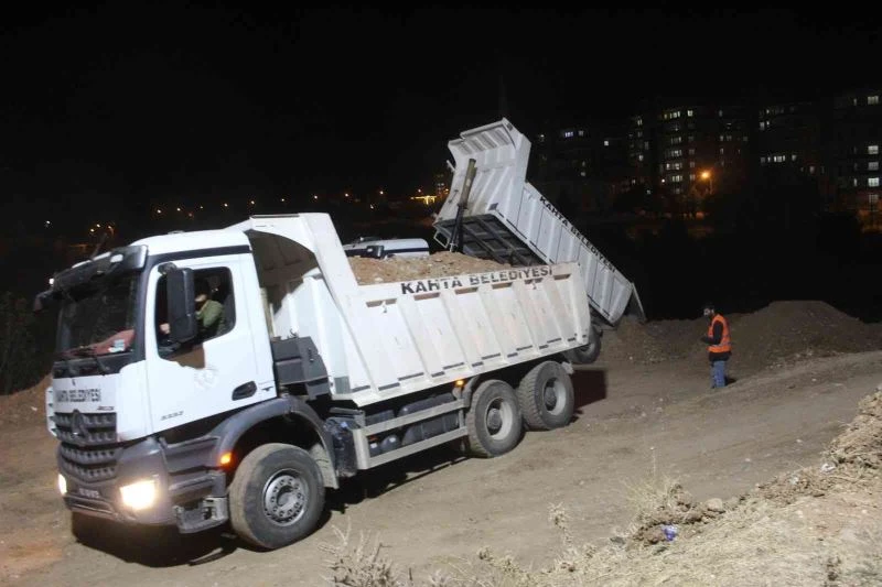 Adıyaman’ın Kahta ilçe Belediyesi tarafından ilçenin ihtiyacına yönelik sürdürülen yol açma çalışmaları kapmasında sürdürülen çalışmalar, gece saatlerinde de hummalı bir şekilde devam ediyor.