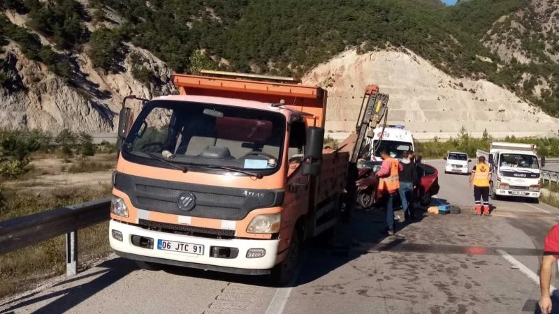 Yol çizgi kamyonuna otomobil çarptı: 1 ölü, 2 yaralı