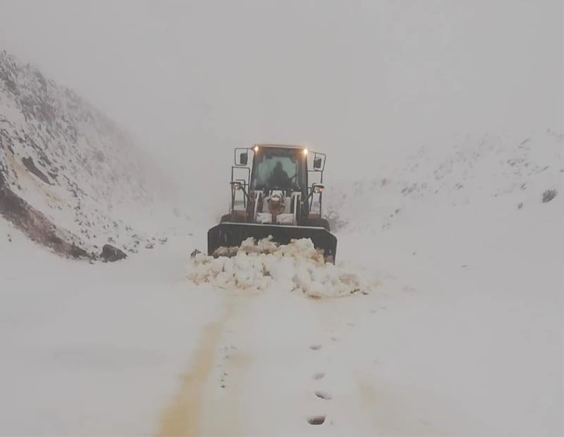 Hakkari’nin yüksek kesimlerinde yol yapım ve onarım çalışması yapan ekipler kar sürpriziyle karşılaştı.