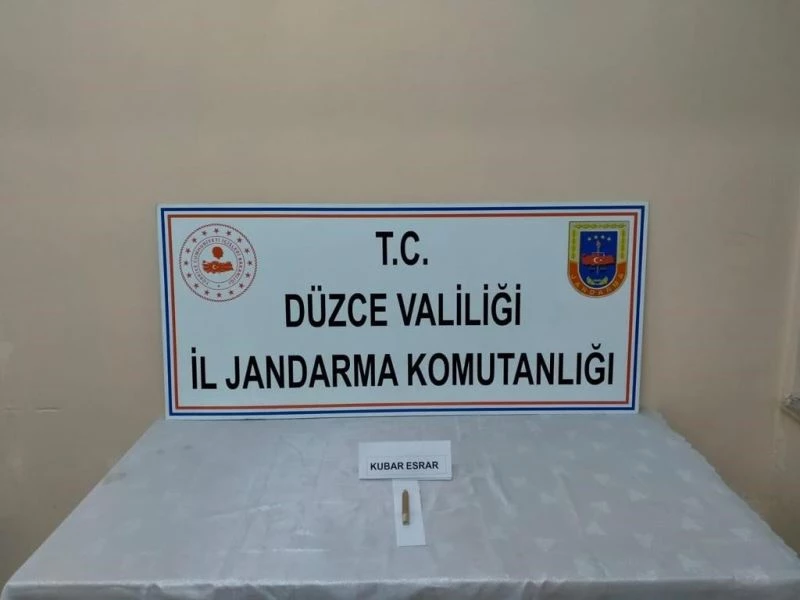 Jandarma ekipleri Yığılca-Düzce karayolunda KOM uyuşturucu köpek unsurları ve trafik timi ile icra edilen yol emniyet ve kontrol devriyesi esnasında M.A. idaresindeki araç durduruldu Durdurulan aracın içinde 5 gram ağırlığında içime hazır kubar esrar maddesi ele geçirildi. Cumhuriyet savcısının talimatıyla tahkikata başlatıldı.