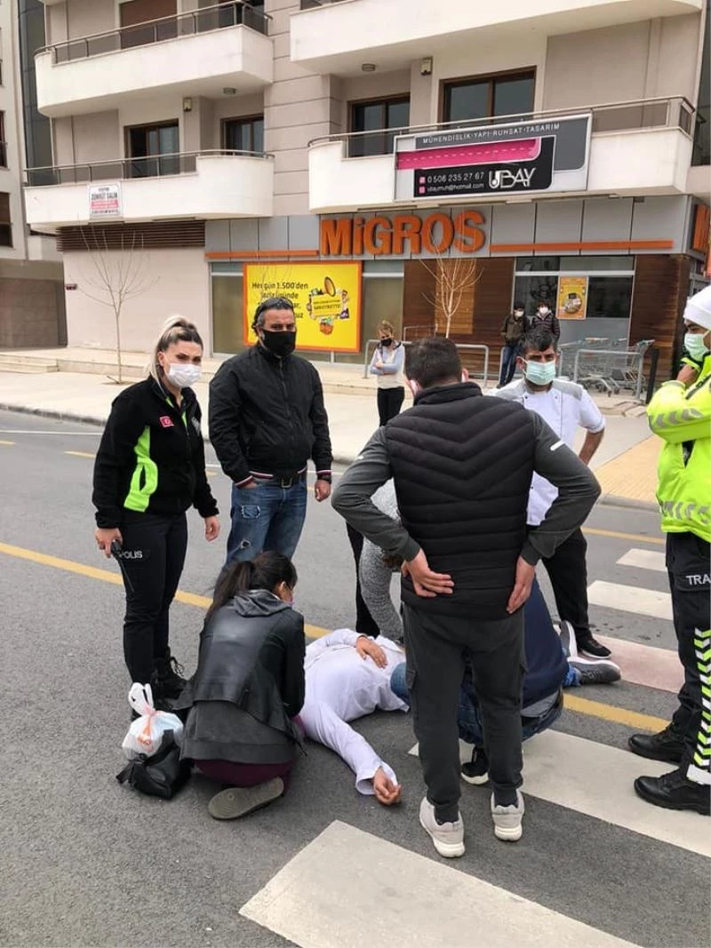 Muğla’nın Menteşe İlçesinde yayaya yol vermek için durmaya çalışan motorlu kurye kaza yaptı.