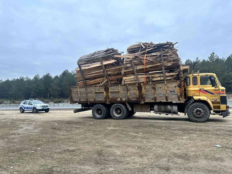 Yola kereste saçan kamyonu polis durdurdu, ormana kaçan sürücüsü kayıplara karıştı