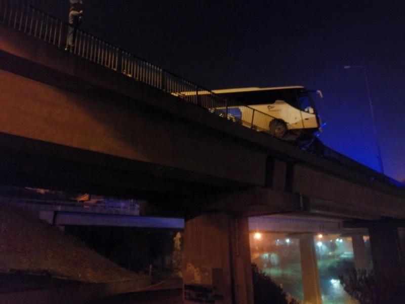 Yolcu dolu otobüs TEM’de kontrolden çıkıp viyadükte asılı kaldı