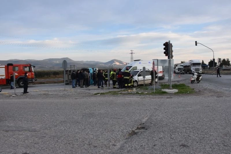 Manisa’nın Akhisar ilçesinde yolcu minibüsü ve otomobilin çarpışması sonucu meydana gelen kazada 7 kişi yaralandı.