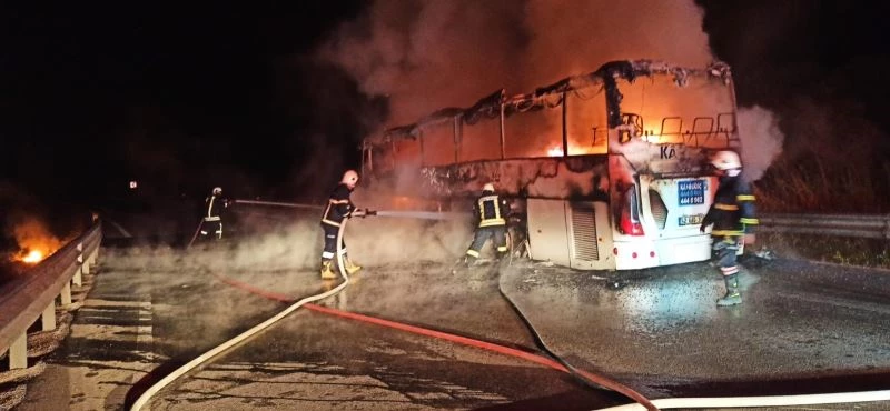 Afyonkarahisar’da, içerisinde 20 yolcunun bulunduğu yolcu otobüsünde çıkan yangın sonrası kullanılamaz hale geldi.