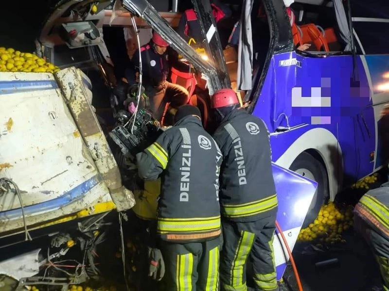 Denizli’nin Bozkurt ilçesinde yolcu otobüsünün aynı yönde seyir halinde olan limon yüklü tıra çarpması sonucu meydana gelen kazada otobüs şoförü hayatını kaybetti, 23 yolcu yaralandı.