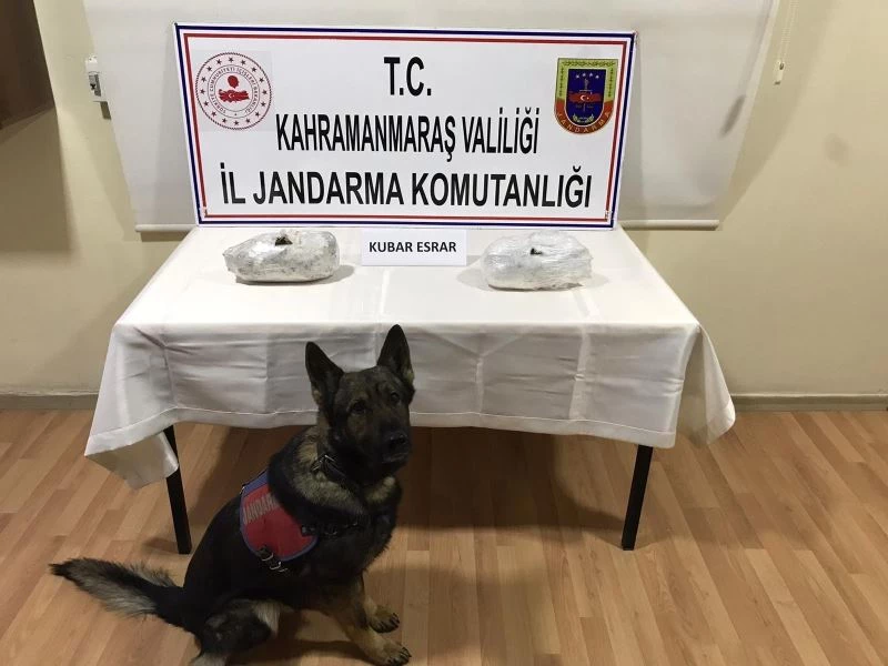 Edinilen bilgiye göre, İl Jandarma Komutanlığı Kaçakçılık ve Organize Suçlarla Mücadele (KOM) ekipleri, Pazarcık ilçesinde yol kontrol ve arama noktasında şüphe üzerine bir yolcu otobüsünü durdurdu. Uyuşturucu arama köpeği Atos’un da katıldığı aramada yolculardan Ş.Y. (26) ile B.B’nin (26) oturduğu koltuğun altında bulunan çantada iki parça halinde bin 82 gram kubar esrar maddesi ele geçirildi. Gözaltına alınan 2 kişi hakkında adli tahkikat başlatıldı.
