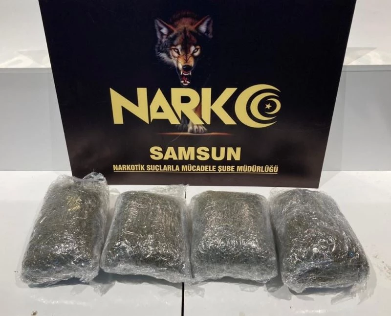 Edinilen bilgiye göre, Samsun Emniyet Müdürlüğü Kaçakçılık ve Organize Suçlarla Mücadele Şube Müdürlüğü ekipleri, Yusuf Ziya Yılmaz Şehirlerarası Otobüs Terminali’nde kaçakçılık faaliyetleri ile ilgili çalışma yaparken Sakarya’dan Samsun’a gelen S.Y. ve A.Y.’nin durumlarından şüphelenerek çantalarında arama yaptı. Yapılan aramada 4 paket halinde 2 kilo 150 gram esrar ele geçirildi. Gözaltına alınan 2 kişi Samsun Emniyet Müdürlüğü Narkotik Suçlarla Mücadele Şube Müdürlüğü ekiplerine teslim edildi.