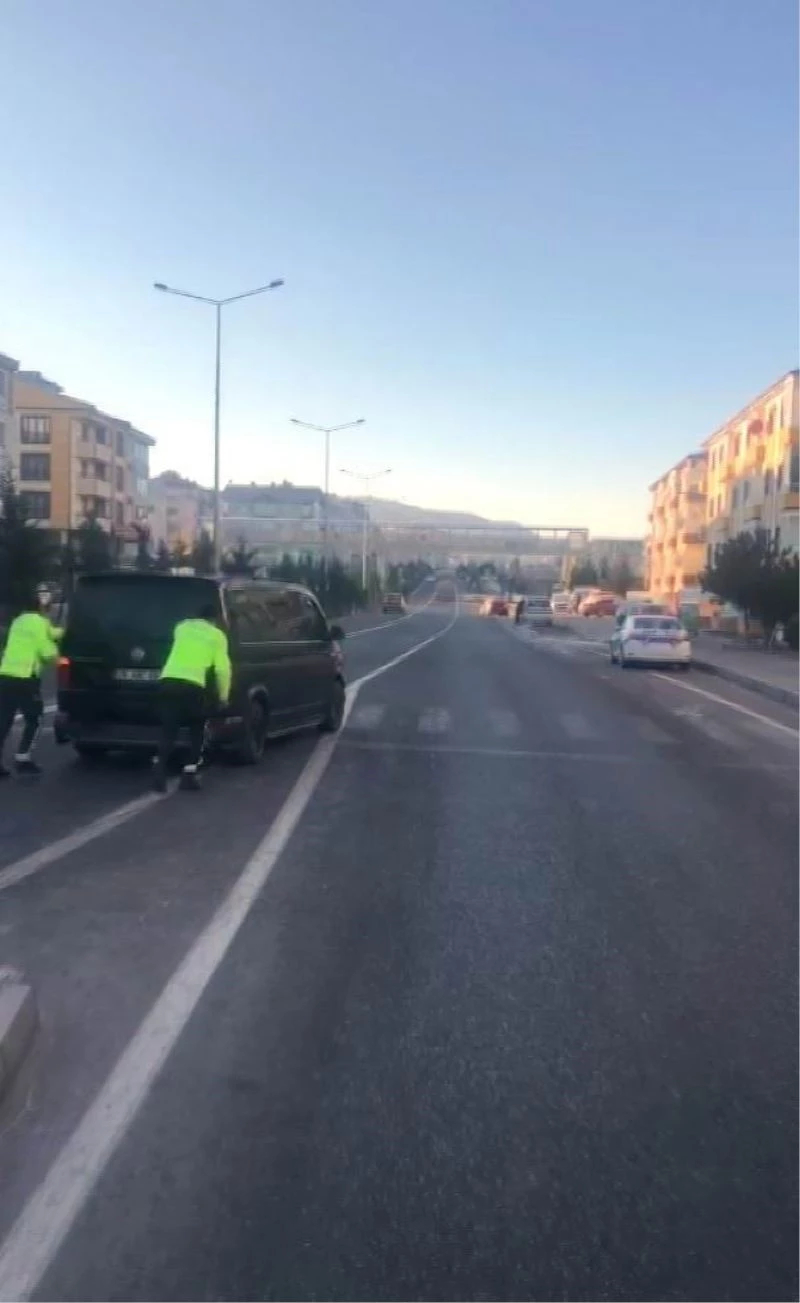 Edinilen bilgiye göre, Nevşehir-Kayseri yolu Zübeyde Hanım Caddesi üzerinde bir araç seyir halindeyken arıza yaptı. Yolda kalan aracı fark eden trafik polisleri, sürücünün yardımına koştu. Araç, polis ekiplerinin yardımıyla güvenli bir şekilde yolun yan tarafına itildi.