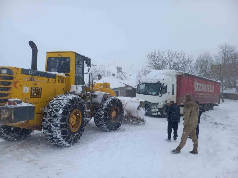 Elazığ’da kar yağışından dolayı yolda mahsur kalan tır, İl Özel İdaresi ve jandarma ekipleri tarafından kurtarıldı.
