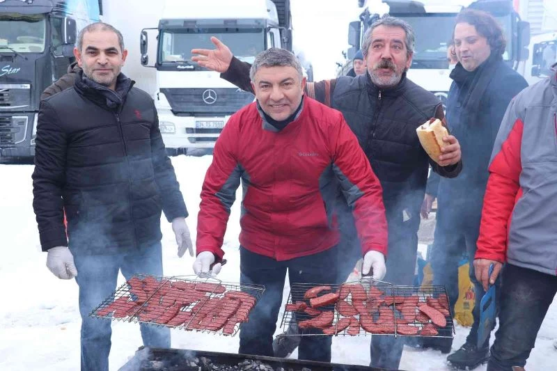 Yolda mahsur kalan tır sürücüleri için mangal kurdular
