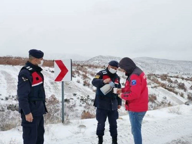 Mihalıççık ilçesi Diközü mahallesinde kamyonet ile seyahat eden bir vatandaş, buzlanma nedeniyle yolda mahsur kaldı. 112 Acil Çağrı Merkezinden yardım talebinde bulunan vatandaşın yardımına ulaşmak için jandarma harekete geçti. İhbarı alan Mihalıççık İlçe Jandarma Komutanlığı ekipleri kısa sürede olay yerine intikal etti. Soğuktan üşüdüğü görülen kamyonet sürücüsüne sıcak çay ikramında bulunuldu. Konu ile ilgili olarak belediye ekipleri ile kurulan koordine neticesinde buzlanan yolun tuzlanarak trafiğe tekrar açılması ve yolda kalan kamyonetin çekilerek ana yol güzergâhına çıkarılması sağlandı.