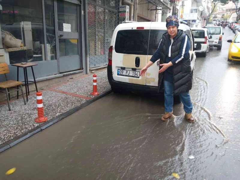 Aydın’ın Efeler ilçesinde yola verilen eğim, yağan yağmurlar ile birlikte esnafı zor duruma soktu.