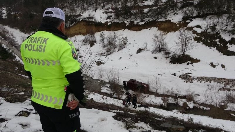 Yoldan çıkan araç uçurumdan dereye yuvarlandı: 2 yaralı