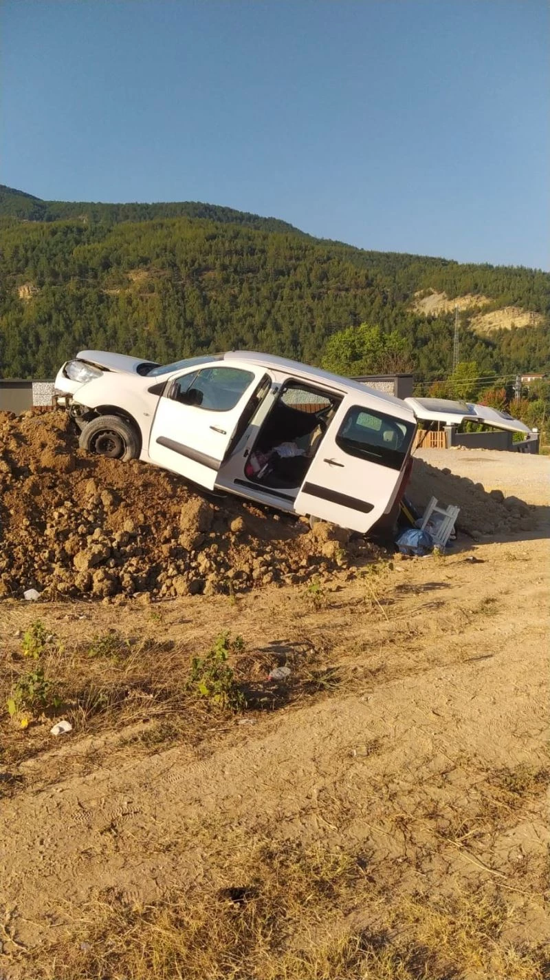 Yoldan çıkan hafif ticari araç toprak yığınına çarptı: 5 yaralı
