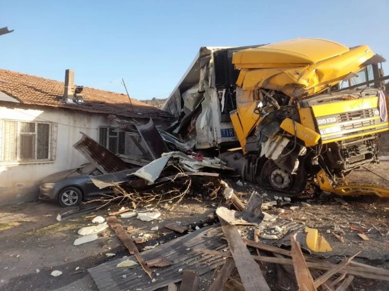 Kastamonu’nun Tosya ilçesinde sürücüsünün direksiyon hakimiyetini kaybettiği kamyon önce otomobile çarptı, sonra yol kenarındaki eve girdi.