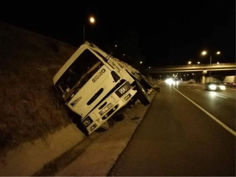Bilecik’in Bozüyük ilçesinde meydana gelen trafik kazasında yoldan çıkan kamyon yol kenarına devrildi.