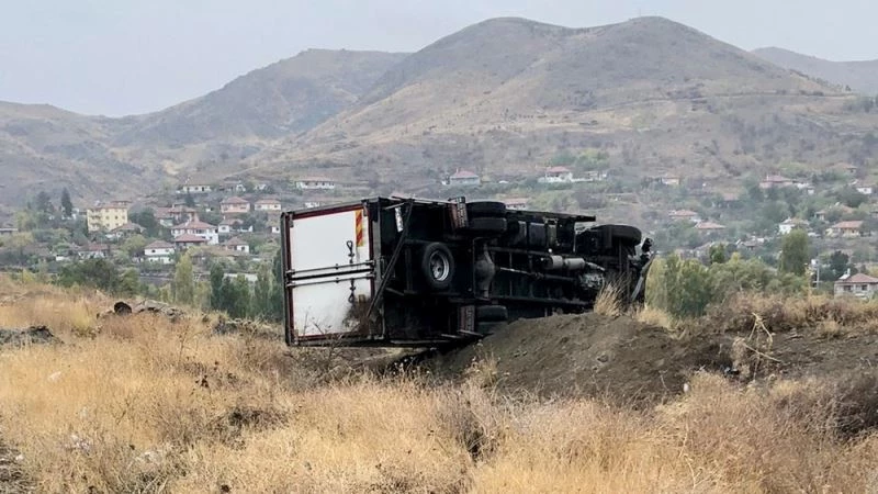 Kırıkkale’de sürücüsünün direksiyon hakimiyetini kaybetmesi sonucu yoldan çıkan kamyon uçuruma ramak kalan yan devrildi.