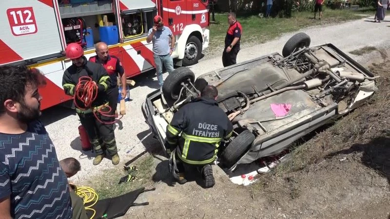 Kaza Düzce Bahçeşehir mevkiinde meydana geldi. Edinilen bilgilere göre Demetevler istikametinden Düzce kent merkezi istikametine gitmekte olan Yasemin K. idaresindeki 26 ADN 092 plakalı Tofaş marka otomobil, sürücüsünün direksiyon hakimiyetini kaybetmesinin ardından yan yola düşerek ters döndü. Kazayı görenlerin ihbarı üzerine bölgeye Düzce Belediyesi İtfaiye Müdürlüğü ekipleri sevk edildi. Sürücü ve yanında yolcu olarak bulunan Elif A., itfaiye ekipleri tarafından çıkartıldı. kazada yaralanan sürücü ile yolcuya ilk müdahale sağlık ekipleri tarafından olay yerinde yapıldı. İlk müdahalesinin ardından tedavileri için Düzce Üniversitesi Hastanesi Acil Servisi’ne kaldırıldı. Polis ekipleri kaza ile ilgili inceleme başlattı.