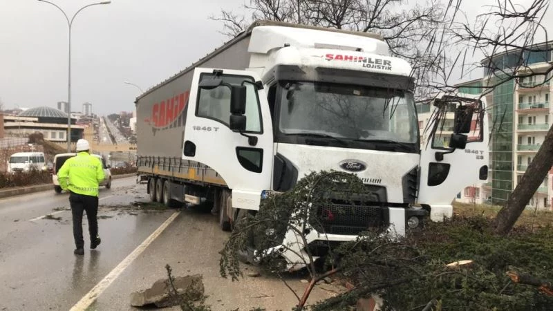 Olayı gören Fatih Şahin, tırın yoldan çıkarak karşı şeride geçtiğini otomobile çarparak durabildiğini söyledi.