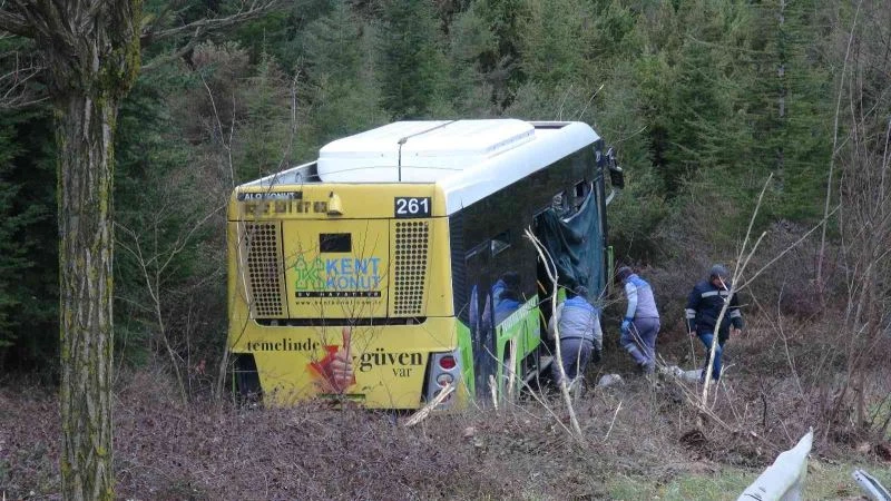 Kocaeli’nin İzmit ilçesinde şehir içi yolcu otobüsü yoldan çıkarak ormanlık alana uçtu. Kazada sürücü ve bir yolcu hafif şekilde yaralandı.