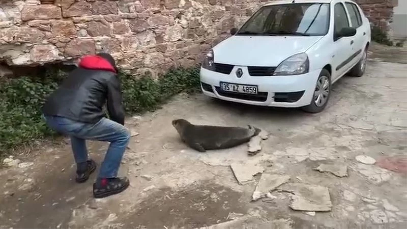 Balıkesir’in Ayvalık ilçesinde sokak arasında gezen fok balığını gören ilçe halkı şaşırdı. Vatandaşlar tarafından yakalanan fok daha sonra doğal yaşam alanı olan denize salıverildi. Bu anlar ise kameralara yansıdı.