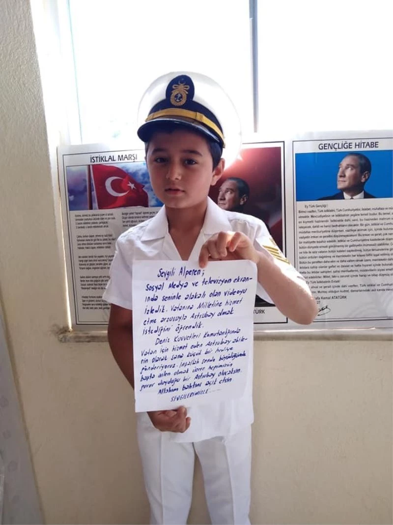 Mersin’in Gülnar ilçesinde kucağında kuzusu, elinde Türk bayrağıyla 23 Nisan şiiri okuyarak gönülleri fetheden 11 yaşındaki Yörük çocuğu Alperen Töstü’ye, astsubaylar tarafından mektup gönderildi ve üniforma hediye edildi.