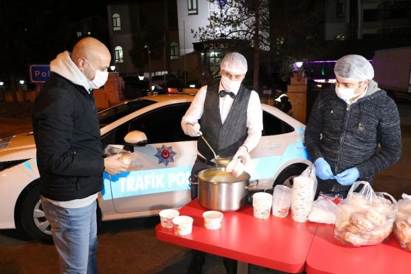 Ekipler daha sonra Muslubelen Uygulama noktasında görev yapan jandarma ekiplerine çorba ikramında bulunurken kent merkezinde görev yapan polis ve bekçilere de çorba dağıtıldı.