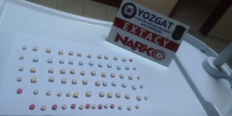 Yozgat Emniyet Müdürlüğü Narkotik Suçlarla Mücadele Şube Müdürlüğü ekipleri yapılan istihbarat çalışmaları kapsamında, farklı illerden uyuşturucu madde temin ederek kent merkezine getirileceği bilgisine ulaştı. Bu doğrultuda şehir girişinde şüphelilerin araçlarını durdurarak arama yapan ekipler, araç içerisinde kağıda sarılı 75 adet uyuşturucu hap ele geçirdi.