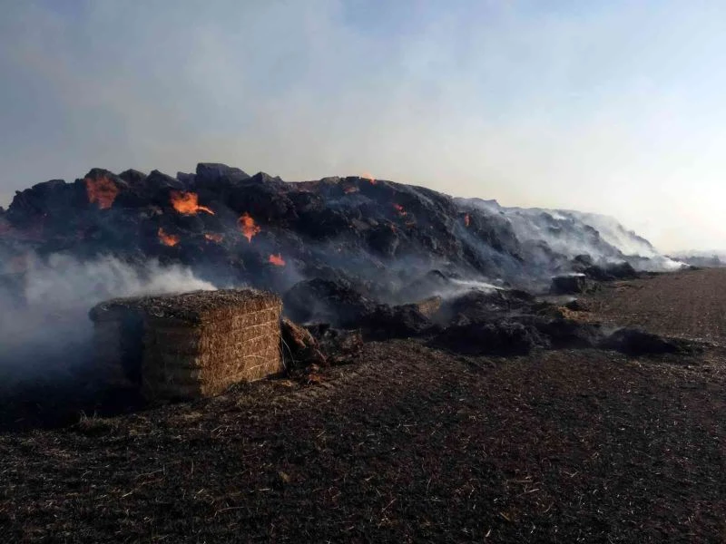 Yangında bin 500 adet saman balyası tamamen yandı.