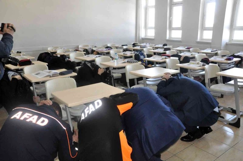 Deprem tatbikatına İl Jandarma Alay Komutanı Albay Halil Başer, İl Emniyet Müdürü Murat Esertürk, İl Milli Eğitim Müdürü Yusuf Yazıcı, AFAD İl Müdürü Halil İbrahim İbiş ve kurum müdürleri de katıldı.
