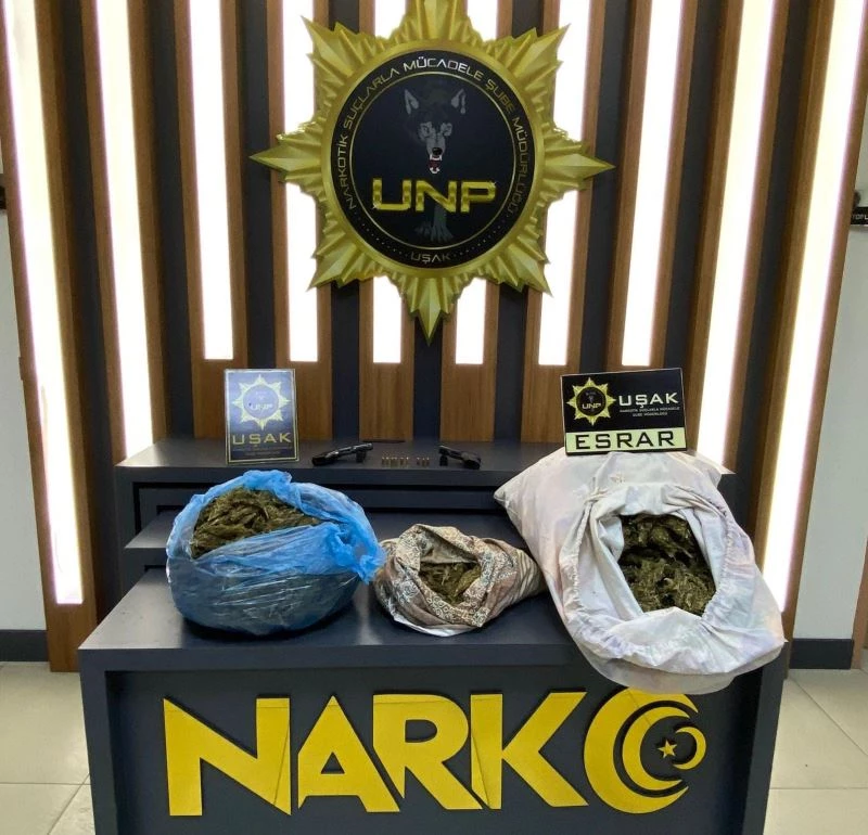 Uşak İl Emniyet Müdürlüğüne bağlı Narkotik Şuçlarla Mücadele Şube Müdürlüğü ekipleri, kent merkezinde yapılan kontroller sırasında şüphe üzerine bir araç durdurdu. Araç içerisinde ekiplerce yapılan arama çalışmasında 6 kilogram 750 gram esrar ve 2 adet tabanca ele geçirildi. Araç içerisinde bulunan 5 kişi de ekiplerce gözaltına alındı. Emniyetteki işlemlerin ardından adliyeye sevk edilen şüpheli şahıslardan 2’si tutuklanarak cezaevine gönderilirken 3 şahıs da serbest kaldı.