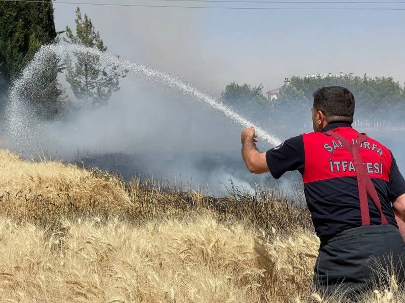 Onlarca dönüm ekili buğdayın kül olduğu yangının tarladan geçen yüksek gerilim hattından çıkan kıvılcımın neden olduğu iddia edildi.