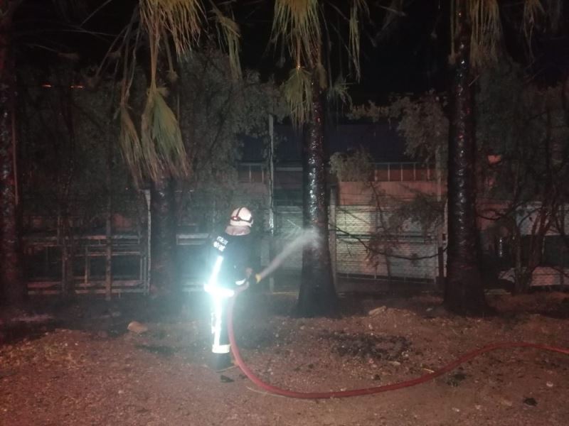 Yangından palmiyelerin önünde karayolu kenarında park halindeki işyerine ait kamyonda nasibini aldı. Palmiyelerden sıçrayan alevler kamyonun sağ kısmının yanmasına neden olurken, kamyonu çalıştırarak uzaklaştıran bir işyeri çalışanı kamyonu tamamen yanmasını önlemiş oldu.
