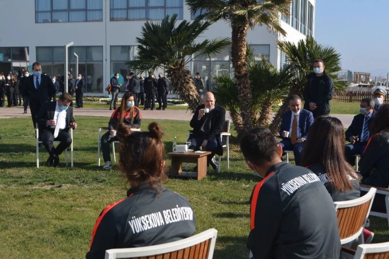 Hakkarili sporcularla bir süre sohbet eden Bakan Soylu, kulüp yöneticilerinden takımın çalışmaları hakkında bilgi aldı.