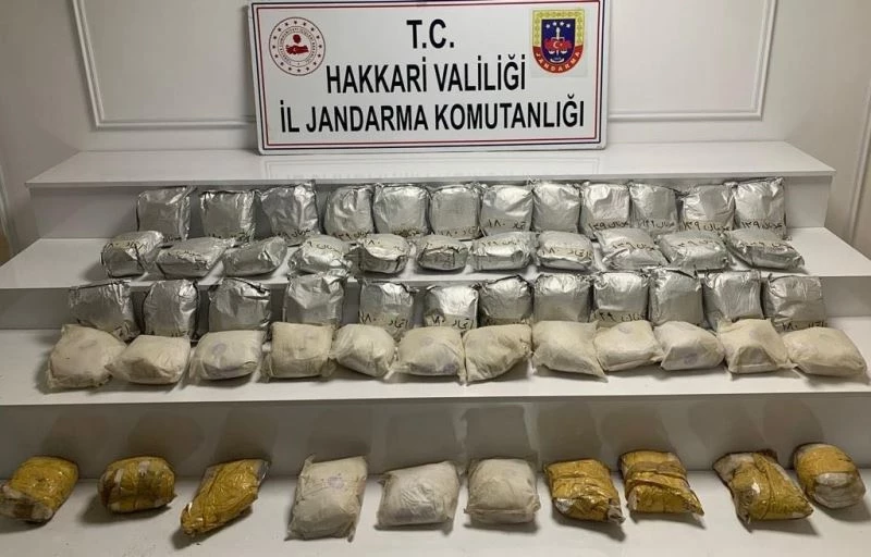 Hakkari Valiliği tarafından yapılan açıklamada, İl Jandarma Komutanlığı görevlilerince “Uyuşturucu veya Uyarıcı Madde İmal ve Ticareti” suçunu önlemeye yönelik yürütülen çalışmaların devam ettiği belirtildi. Açıklamada, “Yüksekova ilçesi kırsal alanında yapılan arama faaliyetinde 60 kilogram eroin maddesi ele geçirilmiştir. Konu ile ilgili adli tahkikat devam etmektedir" denildi.