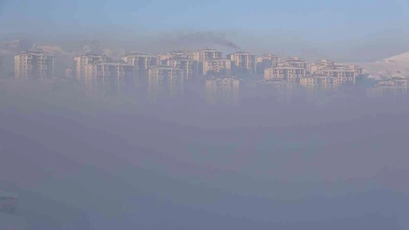 Hakkari’nin Yüksekova ilçesinde yoğun sis nedeniyle göz gözü görmezken evler ise kayboldu.