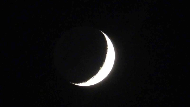 Hakkari’nin Yüksekova ilçesinde Ay’ın hilal şeklindeki görünümü mest etti.