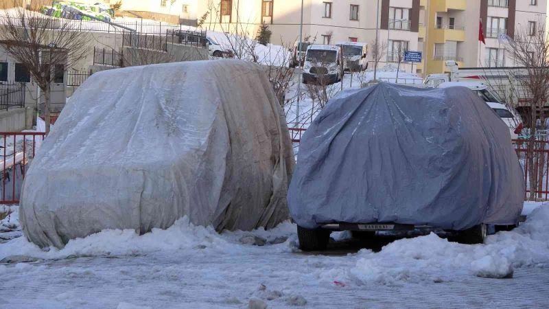 Hakkari’nin Yüksekova ilçesinde yoğun kar yağışından sonra hava sıcaklığının eksilerin altına düşmesiyle şehir adeta donarken, vatandaşlar da araçlarını branda ve naylonla kapattı.