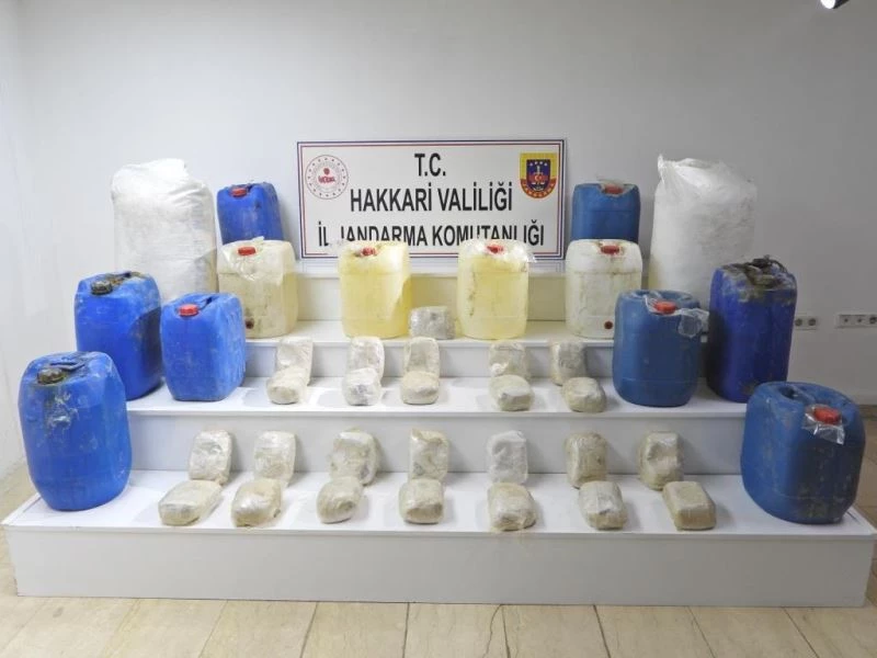 Hakkari Valiliği’nin sosyal medya hesabından yapılan paylaşımda, İl Jandarma Komutanlığı görevlileri tarafından Yüksekova ilçesi kırsal alanında İHA destekli operasyon yapıldığı belirtildi. Açıklamada, “Operasyonda 30 kilogram eroin, 240 kilogram asit anhidrit ve 100 kilogram sodyum bikarbonat maddesi ele geçirilmiştir" denildi.