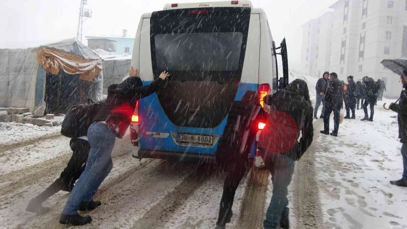 HAKKARİ – Hakkari’nin Yüksekova ilçesinde ani bastıran yoğun kar yağışı her yeri beyaza bürürken, yolda kalan bir yolcu servisindekiler ise vatandaşların yardımıyla kurtarıldı.
