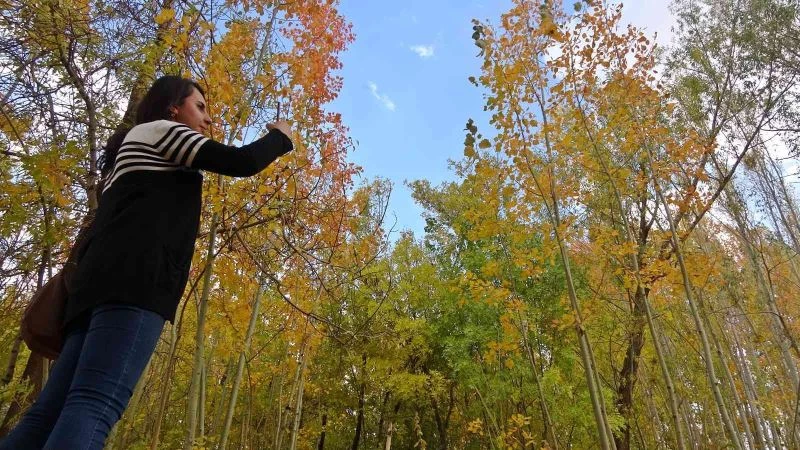Hakkari’nin Yüksekova ilçesinde sonbaharla renk cümbüşüne bürünen ağaçlar mest etti.