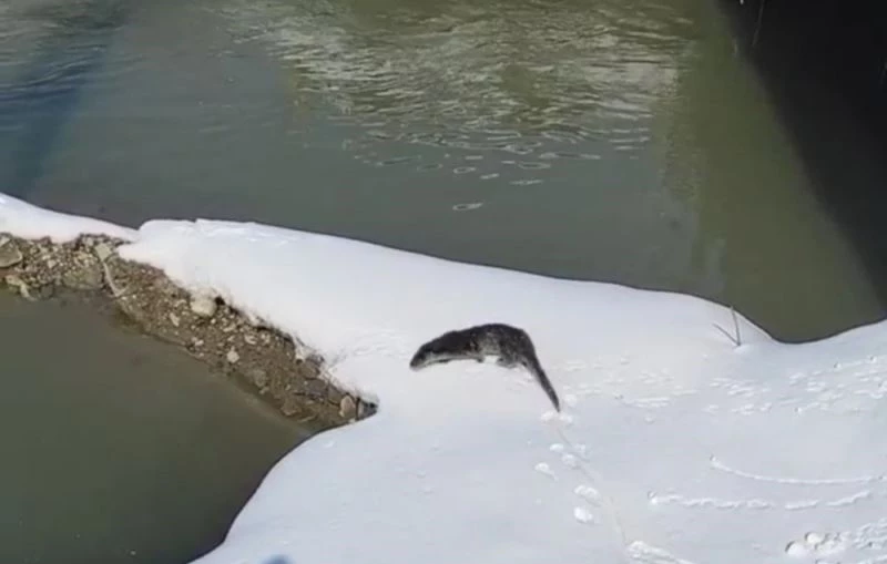 Bir süre çevreyi gezen su samuru daha sonra gözden kayboldu.