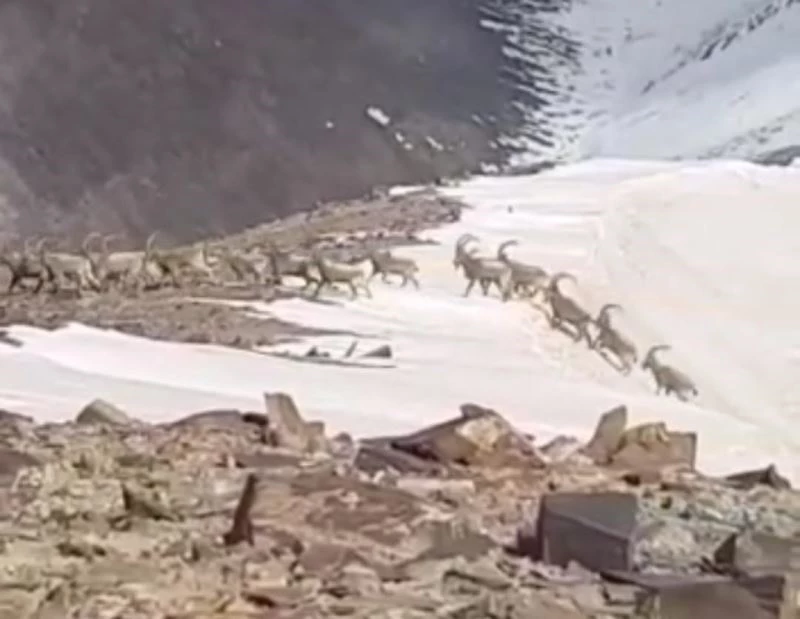 Türk Silahlı Kuvvetleri’nin sürdürdüğü başarılı operasyonların ardından huzurun hakim olduğu bölgede, doğal yaşama ait güzel görüntüler de dikkat çekmeye başladı. Yüksekova’nın İran sınırındaki Esendere bölgesinde elektrik arıza giden ekipler, sürü halinde dolaşan yüzlerce dağ keçisi ile karşı karşıya geldi. Karlı dağlar arasında dolaşan dağ keçilerini arıza ekiplerini fark edince kaçışmaya başlamaları saniye saniye cep telefonuyla kaydedilerek güzel görüntüler ortaya çıktı.