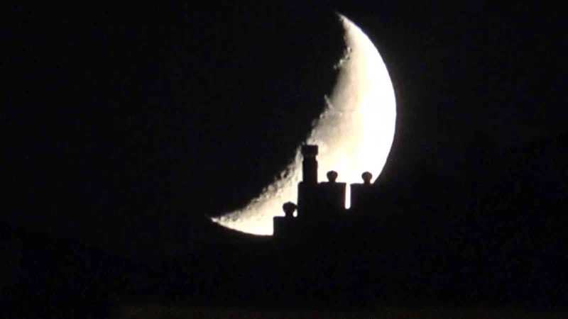 Hakkari’nin Yüksekova ilçesinde görülen hilal şeklindeki yarım ay, kartpostallık görüntüsüyle hayran bıraktı.