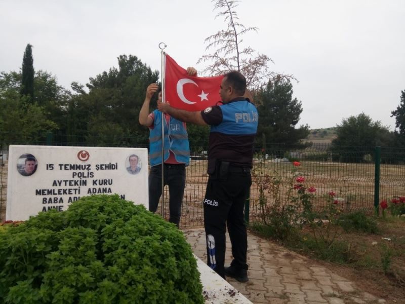 Kozan İlçe Emniyet Müdürlüğü Toplum Destekli Polislik Büro Amirliği polisleri ve Denetimli Serbestlik Müdürlüğünde yükümlü 3 mahkum, Kozan Denetimli Serbestlik Müdürü Mahmut Kıran ve Adana Büyükşehir Belediyesi Mezarlıklar Müdürlüğü görevlileri ile birlikte Pekmezci Mahallesinde bulunan 15 Temmuz şehidi polis memuru Aytekin Kuru ve şehit polis memurları Bircan İlhanlı, Ercan Günay’ın mezarları ile Kuyluk Mahallesi Mezarlığında bulunan şehit polis Mehmet Oflaz’ın kabirlerinde bakım ve temizlik çalışması yaptılar.