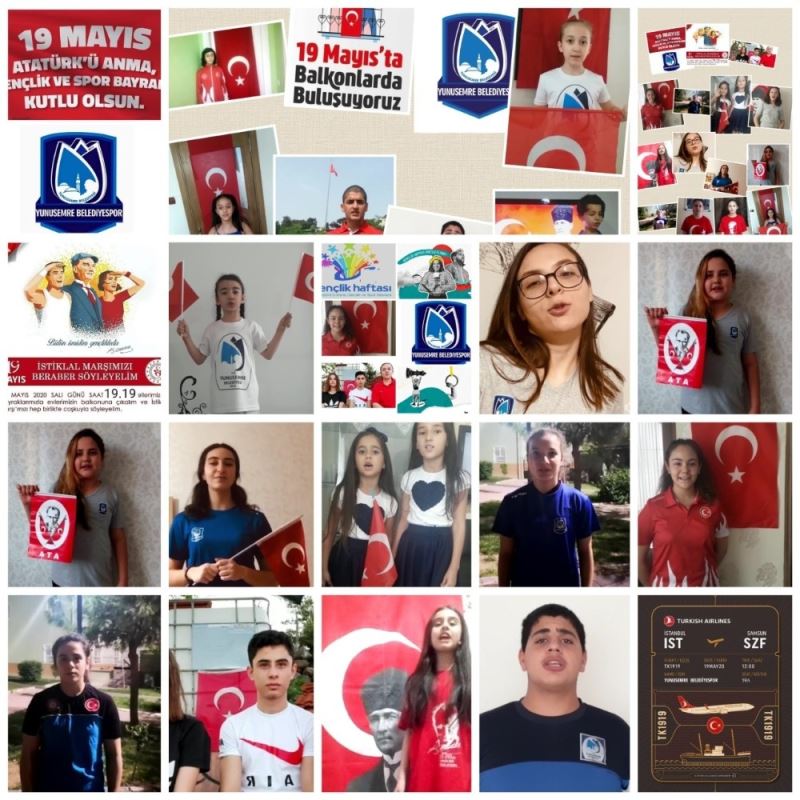 Tüm dünyayı etkisi altına alan korana virüs (Covid-19) salgını nedeniyle Yunusemre Belediyespor Kulübü’nün evlerinden çıkamayan sporcuları yaptıkları çeşitli faaliyetler ile 19 Mayıs Atatürk’ü Anma Gençlik ve Spor Bayramı ile Gençlik Haftasını kutladı. Gençlik Haftası kapsamında balkonlarında egzersiz etkinliklerine devam eden sporcular, evlerini Türk bayraklarıyla donatırken; İstiklal Marşını coşku ile okudu. Sporcular, evlerinden çıkamasalar da 19 Mayıs için çektikleri videolarla 19 Mayıs Atatürk’ü Anma Gençlik ve Spor Bayramı coşkusunu yaşadı.