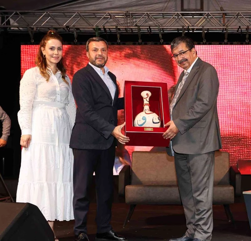 Programın sonunda Başkan Kocaispir, eşi Raziye Kocaispir ile beraber Hayati İnanç’a kültürevlerinde el emeği göz nuru hazırlanan vazo ve çiçek takdiminde bulundu.